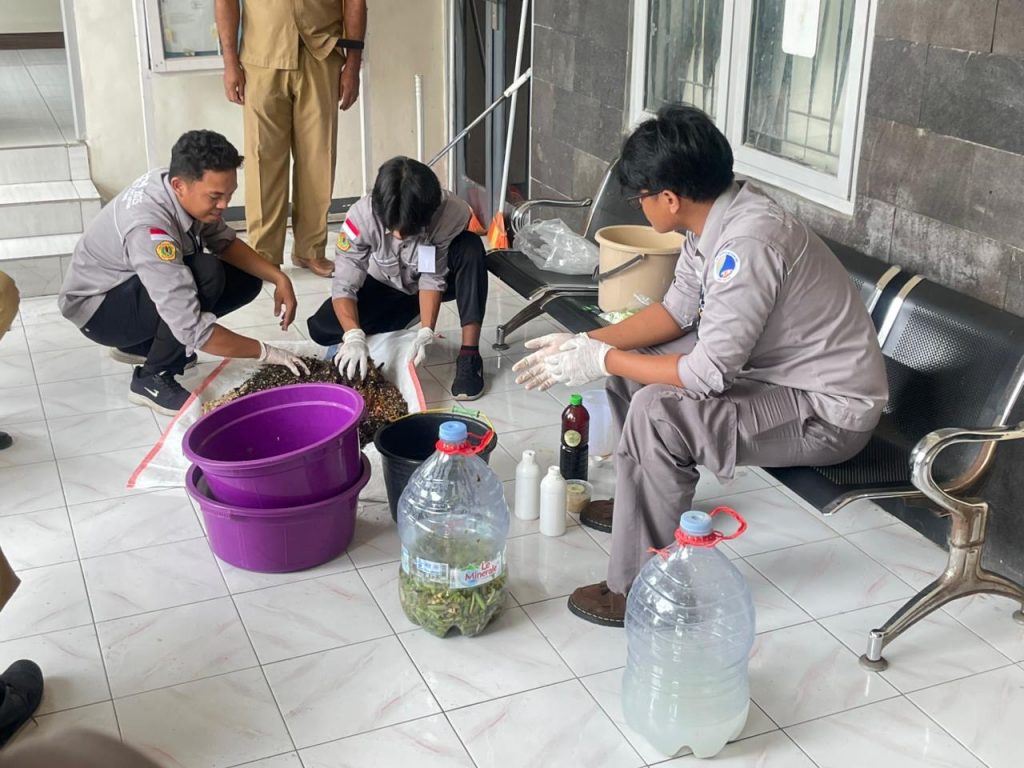 2. Pupuk Organik Cair/POC (Limbah Rumah Tangga): Warga diajarkan cara mengolah sisa sayuran dan buah-buahan dari dapur menjadi POC. Inisiatif ini dikhususkan untuk mendorong pemanfaatan lahan pekarangan rumah melalui konsep *urban farming* atau kebun keluarga.